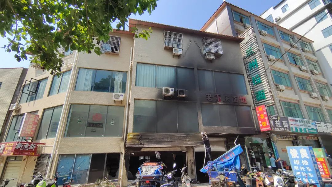 惠州一摩托維修店著火,消防員6分鐘控制火勢