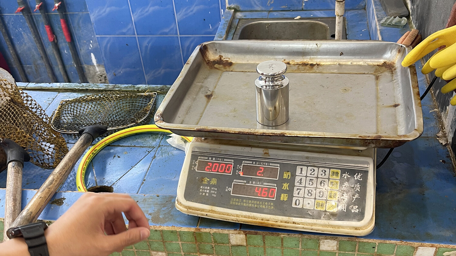 在金海灣海鮮市場,檢查組隨機對市場內的16家經營攤位所使用的“秤”進行現場砝碼檢查,未發現計量不準的情況,現場發現42號檔存在使用未經檢定的電子秤的問題,已移交大亞灣區市場監督管理局跟進處理。隨機抽查了市場內的3臺公平秤,未發現計量不準的情況,且都貼有檢定標識。