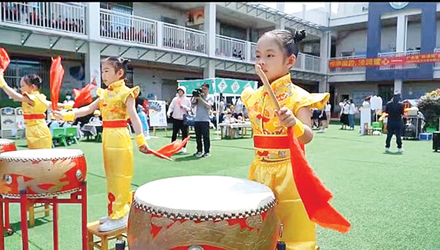 小朋友進行民俗活動展演。 惠州日報記者賴金朗 特約通訊員李文聰 攝