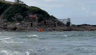 消防員到達現場后,經與現場派出所警員了解到:5人相約登島拍攝日出,結果遇上漲潮,導致無法離開。了解到情況后,消防員立即系上安全繩,帶上救生衣和救生圈前往島上救援。