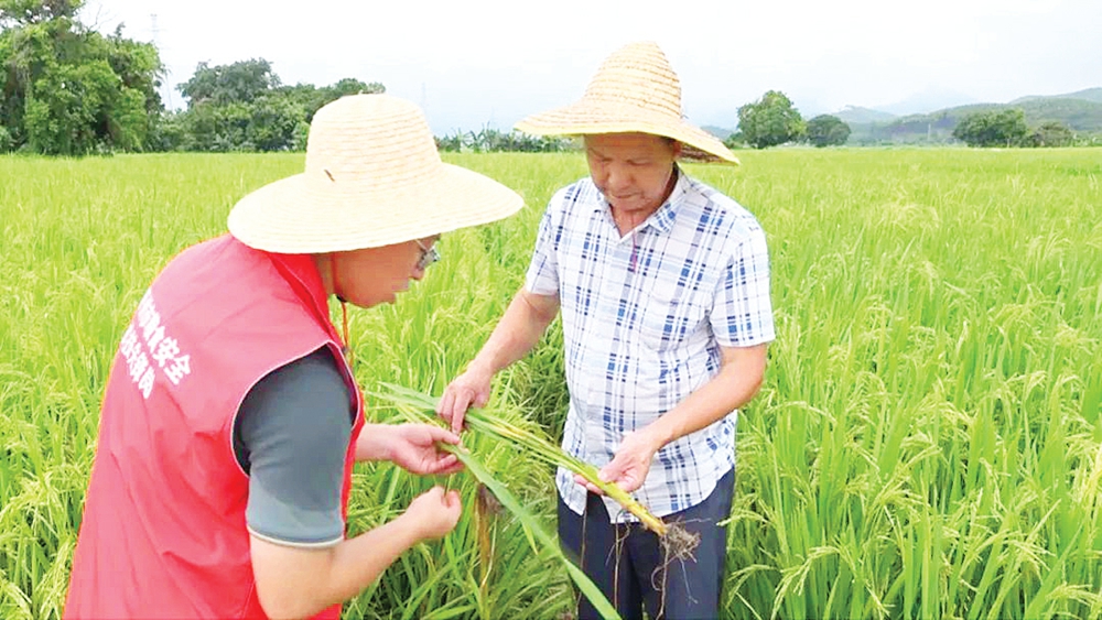 惠州日報訊 (記者藍斐菲 特約通訊員李文聰)當前,農業生產進入病蟲害高發期,適逢“龍舟水”集中來襲,給水稻等農作物生長造成較大影響。為保障早稻穩產豐收,日前,惠東縣農業技術推廣中心組織農技先鋒崗技術人員來到田間地頭,為廣大農戶支招。