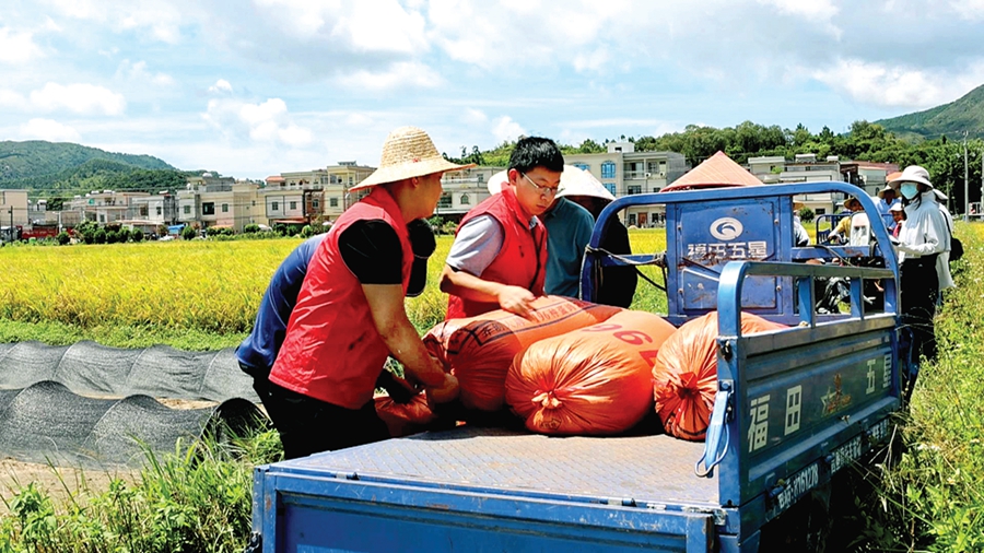 裝袋搬運,一派繁忙。