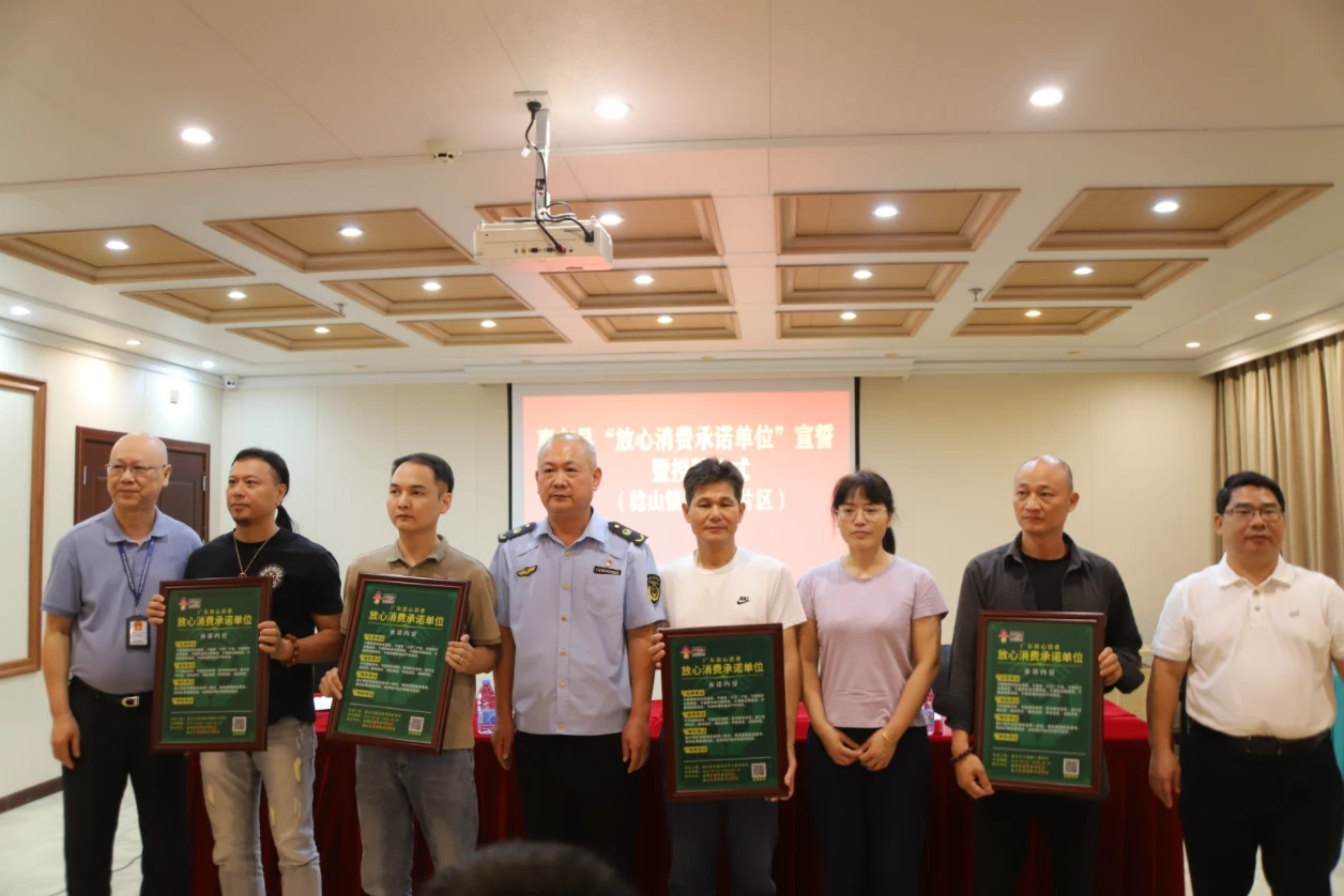 在主會場現場,市場監管部門及稔山鎮政府領導向各承諾商戶授予牌匾并贈送《消費者權益保護法》《食品安全法》《計量法》等法律法規宣傳手冊,要求各獲牌商戶對照《放心消費承諾單位工作指引》誠信守法經營,珍惜榮譽,再接再厲,進一步提升商品品質和服務質量,落實消費維權主體責任,為營造安全放心的消費環境做出新的更大貢獻。