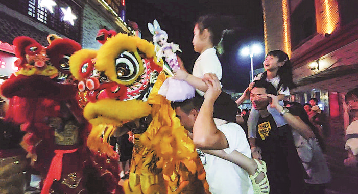 獅子舞起來(lái)。惠州日?qǐng)?bào)記者陳濤 攝