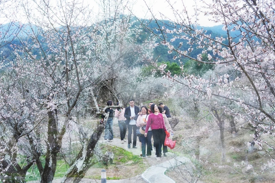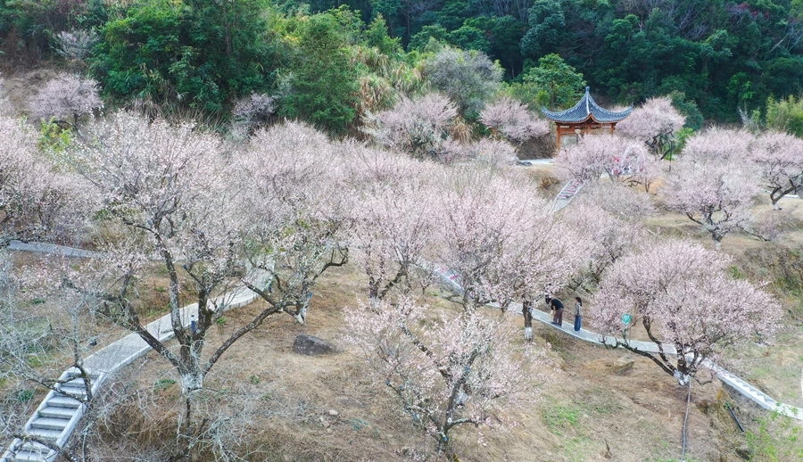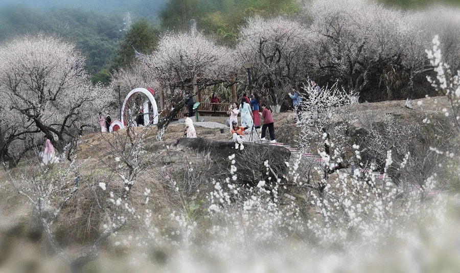 近日,惠州市惠東縣梁化國(guó)家森林公園梅園的千畝梅花競(jìng)相怒放。記者沿著山丘看到,登山道上,游人如織,熙熙攘攘,甚是熱鬧。梅花層層疊疊,屈曲盤旋的枝干自由舒展,白的、粉的花蕾綴滿枝頭,一團(tuán)團(tuán)一簇簇,蜜蜂嚶嚶嗡嗡,翩飛于花瓣之上。不少游客慕名而來,賞梅聞香,拍照打卡。
