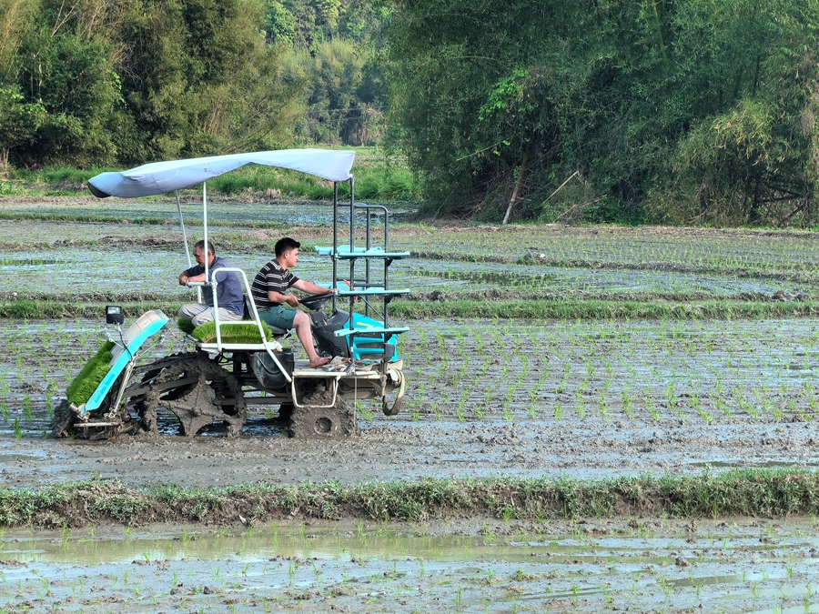 寶口鎮佐坑村村干部上機操作插秧;葜萑請笥浾吆轾o兒 攝