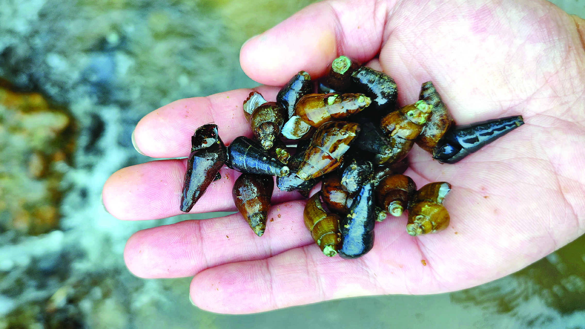 惠東縣高潭鎮甘溪村在小溪里養殖的山坑螺。惠州日報記者楊建業 攝