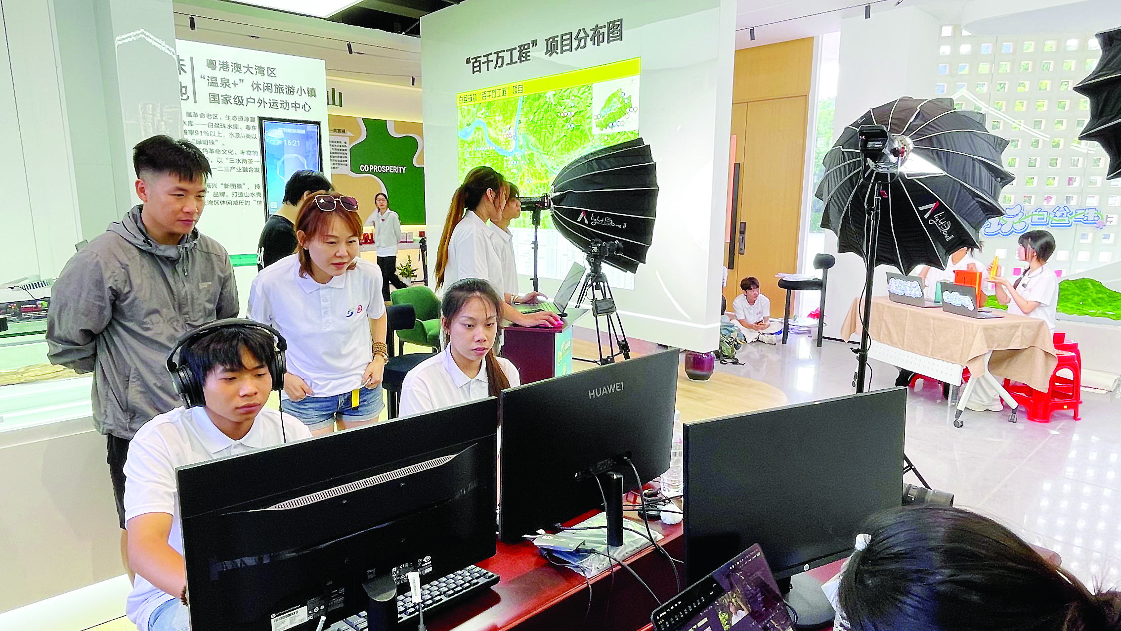 “‘趣’玩白盆珠,點贊深職大!”直播間里傳來一陣陣吶喊聲,原來是“紅金藍綠”農文旅直播突擊隊正在直播。這支突擊隊前期對白盆珠鎮文旅資源進行了挖掘分析及實地走訪,并以大學生視角選取了有代表性、符合年輕人文旅偏好的特色景點及線路。他們充分結合影視傳媒的專業特長,確定了節目調性及直播形態,通過現場直播推廣白盆珠鎮特色景點,宣傳當地農特產品,取得明顯成效。