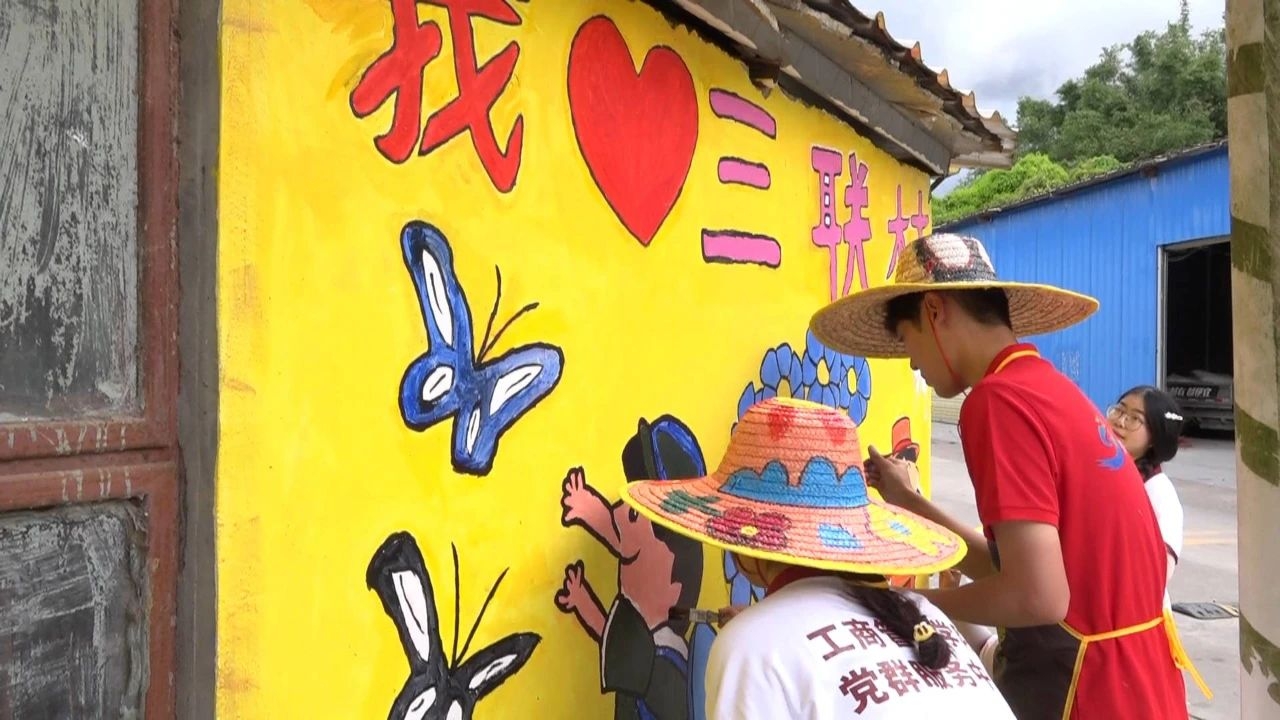 大學生為三聯村繪制美麗墻繪。惠州日報記者蔡偉健 通訊員馬觀英 攝