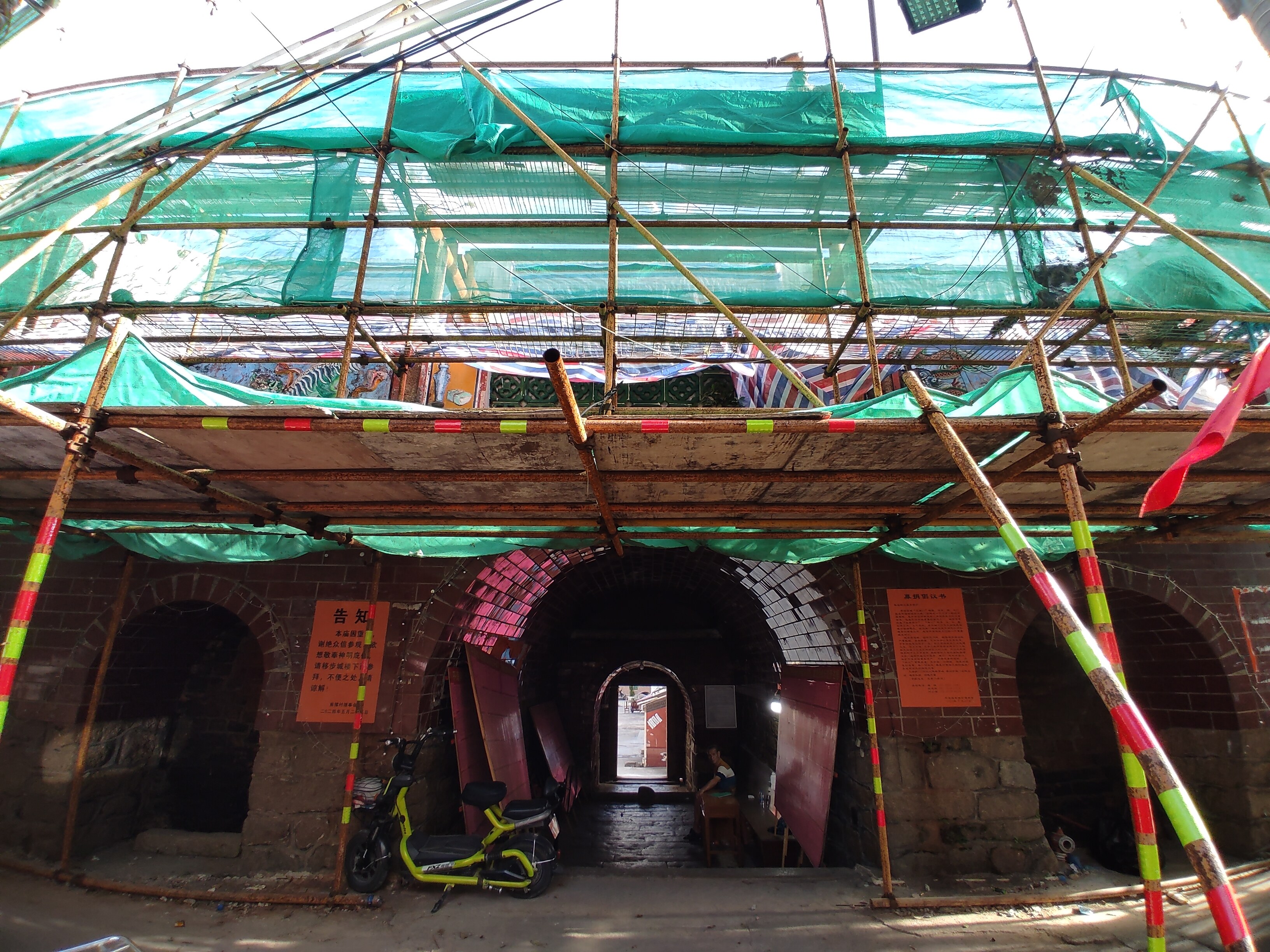 平海古城南門城樓正在修繕,預計今年年底完工。