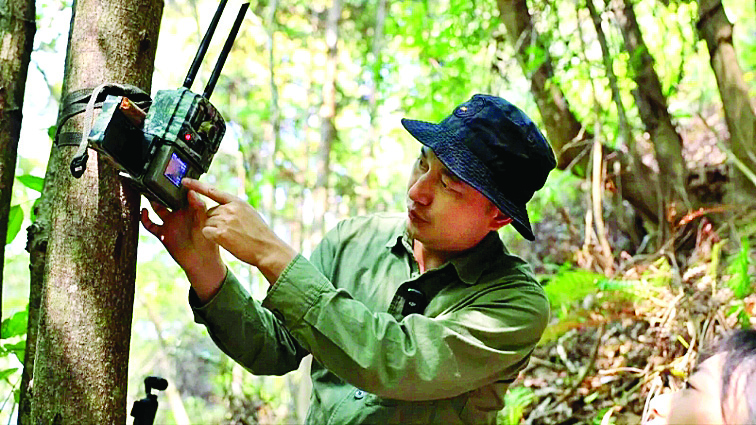 工作人員在安排紅外攝像頭。惠州日報記者蔡偉健 通訊員黎愛平 王顯運 攝