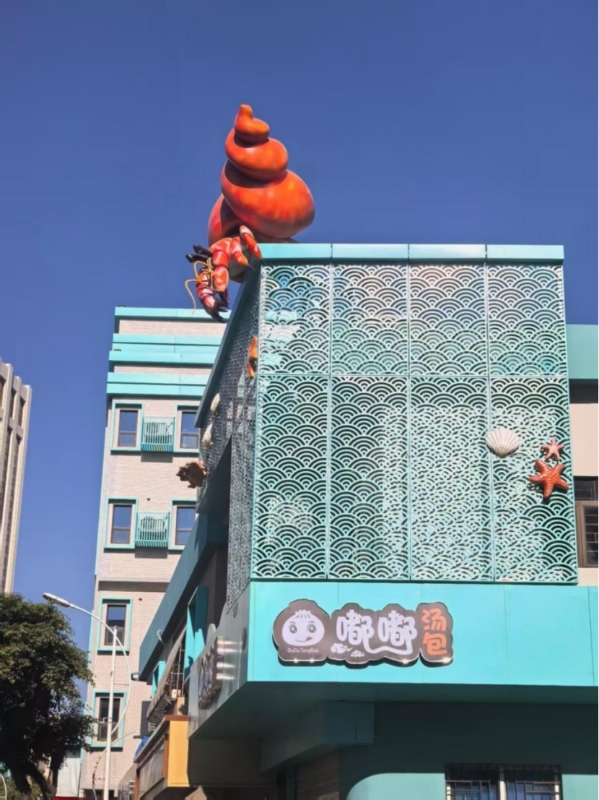 設計團隊充分尊重商戶文化習俗與情感訴求,結合街區海洋主題定位,連夜調整設計方案。新方案中的寄居蟹采用卡通化造型,外殼融入海浪紋理與暖色調漸變,既保留了“聚財”的美好寓意,又與周邊建筑風格相得益彰。經過反復打磨優化,最終的設計圖得到了陳師傅等沿街商鋪業主和居民的一致認可。路過的居民和游客紛紛駐足欣賞,不少人還專門為這只“網紅寄居蟹”拍照打卡,為小店帶來更多人氣。