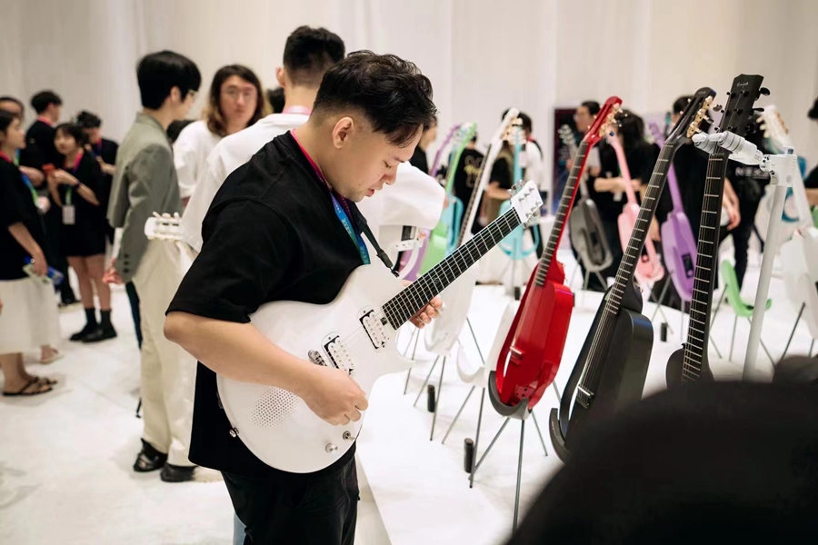 發布會現場,新產品重磅出擊,包括3款創新配件、5款新吉他、3款藝術家聯名合作款。業界人士評價,既有顏值又有內涵,都是劃時代的產品。
