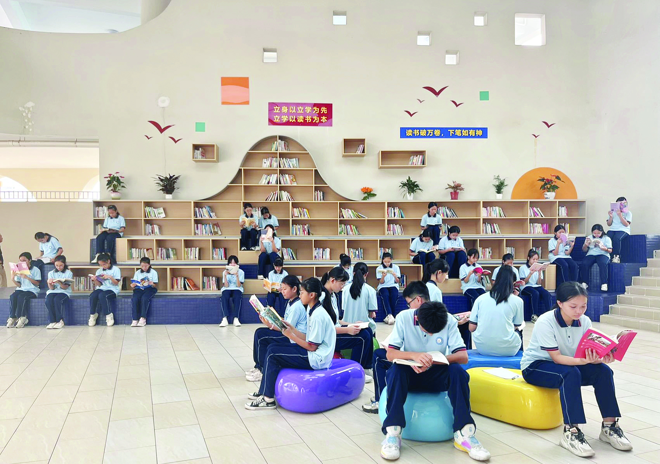 惠陽區(qū)第七中學(xué)教學(xué)樓一樓設(shè)立開放式校園書吧以來,校園里愛讀書、讀好書、善讀書的氛圍越來越濃。2023年,在人大專項資金的幫助下,該校充分利用合理空間,在教學(xué)樓一樓設(shè)立占地約200平方米的“悅”書吧,作為師生學(xué)習(xí)、休憩的重要場所。每到下課時間,書吧里就聚滿了同學(xué),大家浸潤在書籍的海洋里,利用碎片化時間進(jìn)行閱讀。