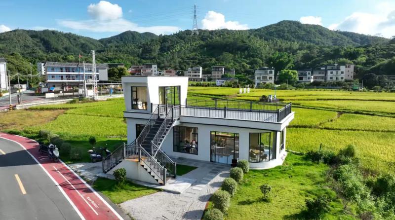 “在黃洞村遇見、相見,只有見面,人的情感才可以更好地傳遞、互動!秉S洞村駐村“第一書記”黃學平介紹了咖啡館的名字寓意,除了咖啡、茶飲、小吃外,這里也為游客們提供了一個休憩、交流、拍照打卡的場所?Х任菸挥谶M村的主干道一側(cè),占地約300平方米。一樓有制作間、用餐區(qū),二樓是露臺,也可做用餐區(qū)。咖啡屋采取大面積玻璃窗,放眼望去,窗外是村內(nèi)連片幾百畝的稻田和佳禾園田園綜合體的風光,隨手一拍就是文藝大片。