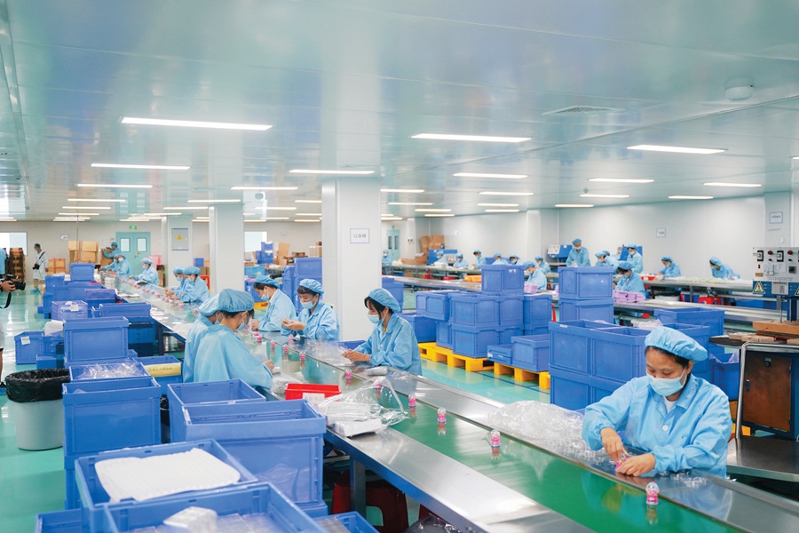 位于龍門工業園的惠州市深同躍實業有限公司生產線上,工人們加緊生產。 惠州日報記者湯渝杭 攝