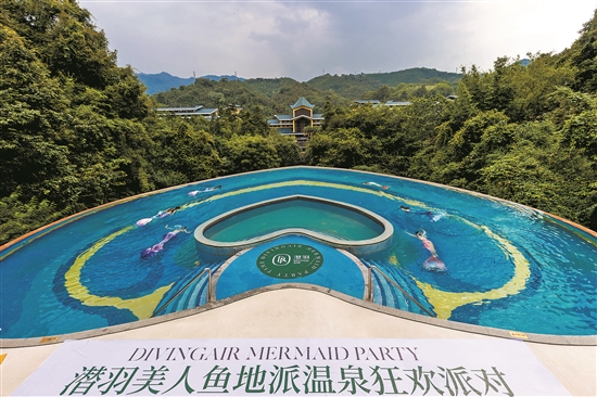 各種新穎的避暑方式和去處,頻頻刷爆社交網絡平臺。近日,龍門地派溫泉森林度假區的山谷懸崖心形無邊泳池,出現了震撼的一幕——近100條“美人魚”躍入心形泳池之中。在無邊森海的襯托以及夏日天光云影的映照之下,她們拖著五顏六色的“尾巴”暢游,頗具觀賞性。據悉,該活動將計劃挑戰申報世界最大規模美人魚泳池表演秀吉尼斯紀錄。