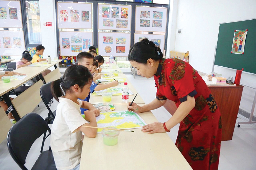 龍門農(nóng)民畫畫家因材施教激發(fā)孩子們學(xué)習(xí)繪畫的興趣。