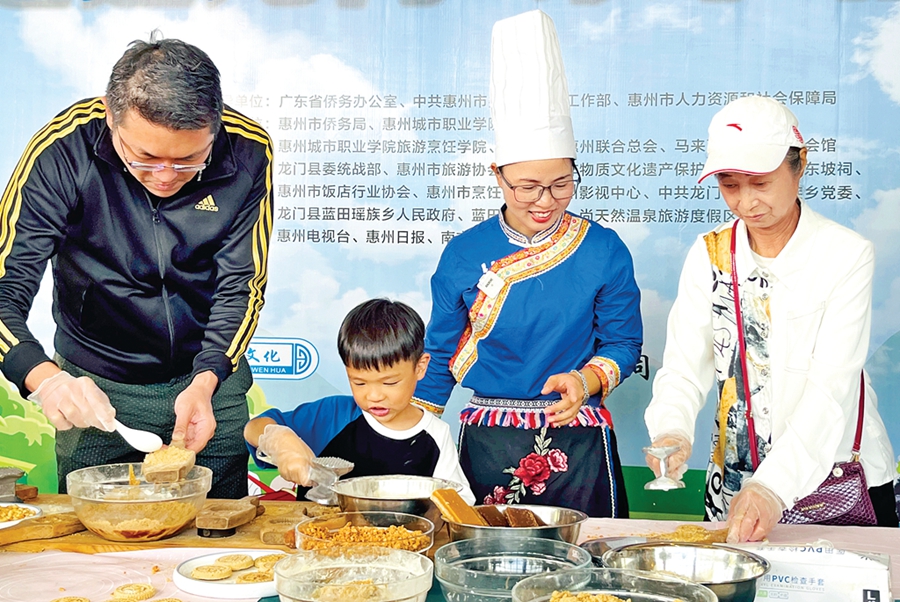 現場賓客與烹飪技師一同制作龍門米餅。惠州日報記者黃宇翔 通訊員龍融心 攝