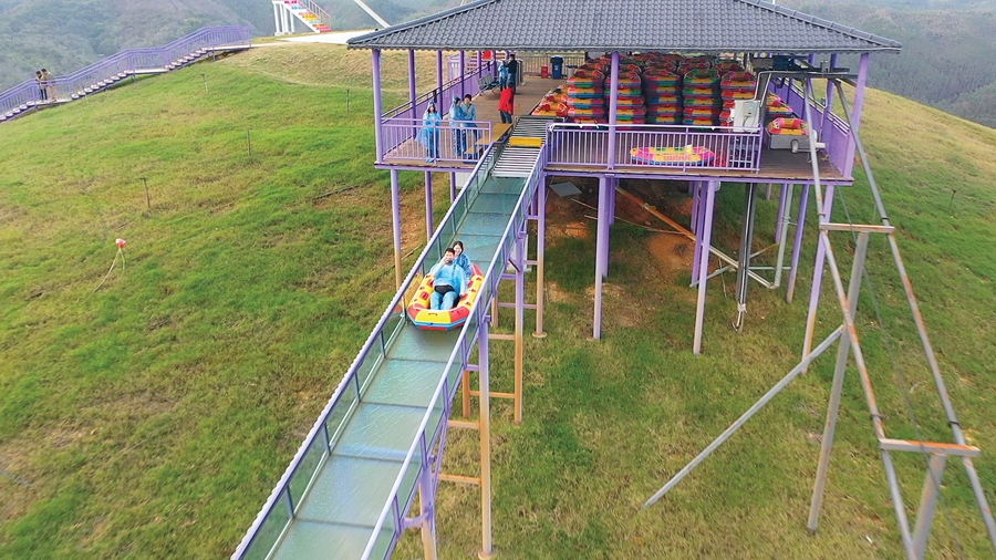 游人在龍門 鹿鷹科普生態園體驗玻璃水滑道項目。 惠州日報記者湯渝杭 攝