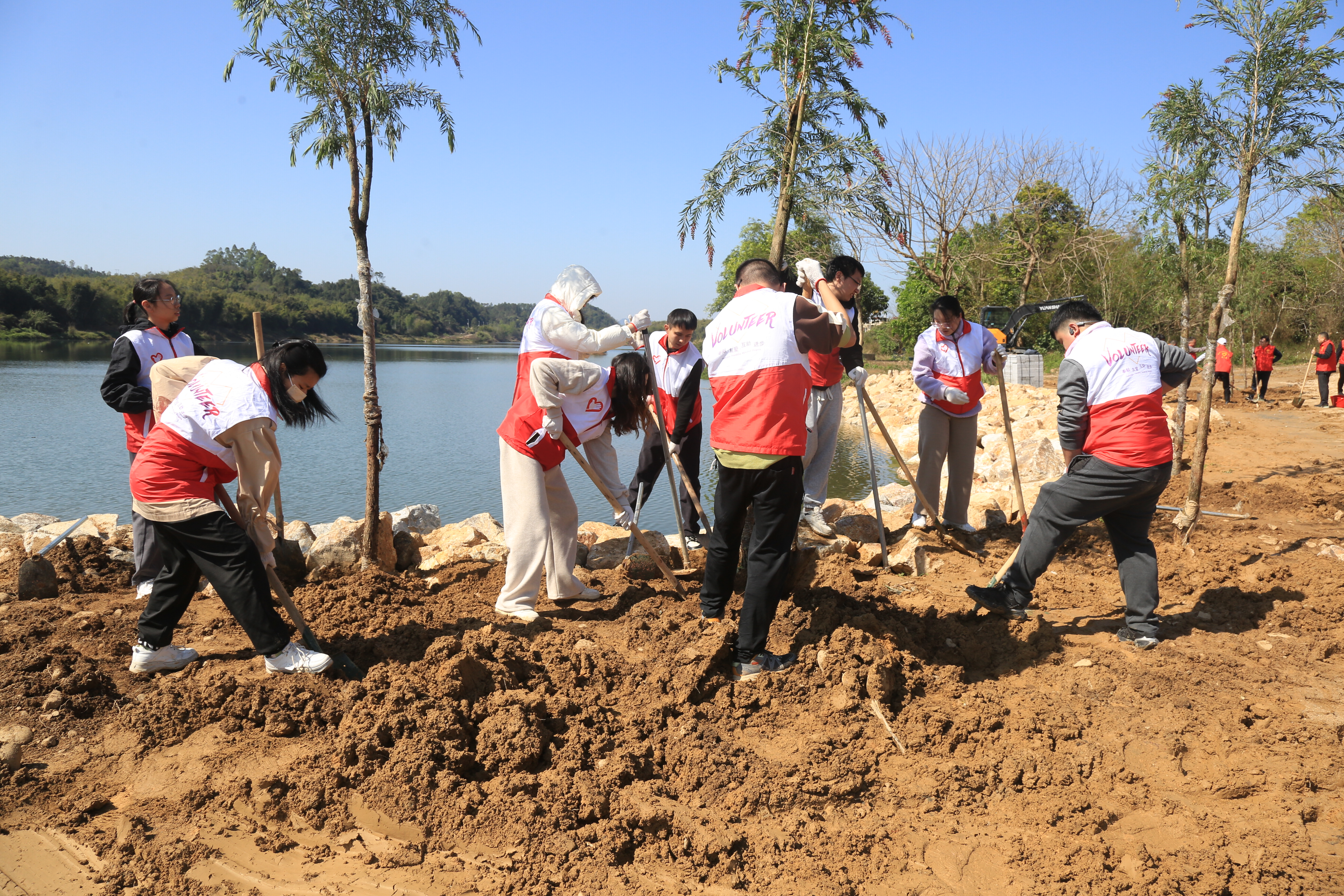 龍城街道城西村臨河公園植樹現場。惠州日報記者黃宇翔 特約通訊員黃偉光 攝