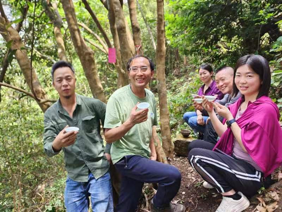 一路上,大家對古茶樹群落所在的地理環境、氣象氣候、周邊植物種群以及土壤等進行觀察分析,對古茶樹的分布情況、生長形勢和采摘條件等進行了調研,并嘗試采摘。