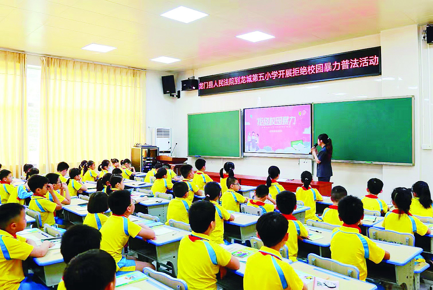 龍門縣人民法院到龍城第五小學開展拒絕校園暴力普法活動。