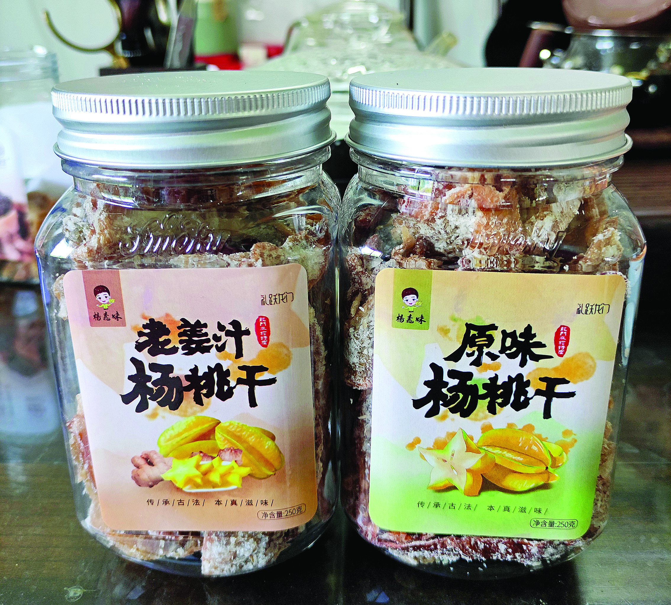 “我們?nèi)ツ曷?lián)合廠家研發(fā)生產(chǎn)出兩款楊桃涼果——原味楊桃干、老姜汁楊桃干,市場(chǎng)反響還不錯(cuò),幾千罐都賣完了。”張映萍說(shuō),將鮮楊桃制作成不同口味的休閑食品楊桃干,提升了楊桃的附加值。今年計(jì)劃根據(jù)市場(chǎng)反饋,進(jìn)行一些口味的調(diào)整,繼續(xù)生產(chǎn)楊桃干。
