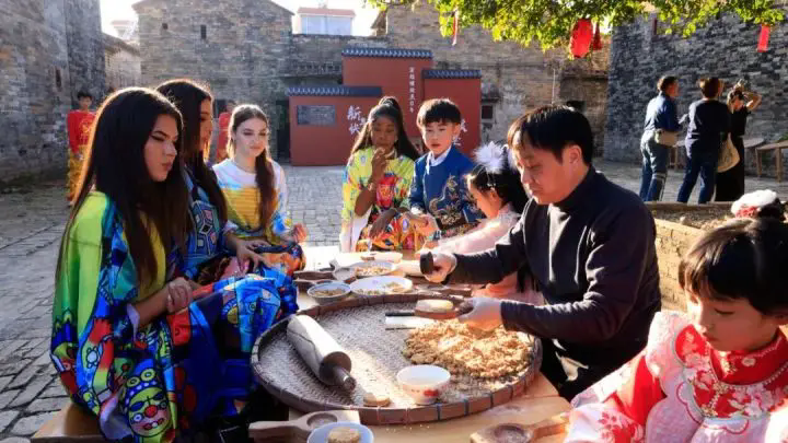 龍門歷史源遠流長,文化底蘊深厚,非遺資源豐富多彩。世界旅游小姐近距離觀摩龍門農(nóng)民畫、龍門年餅、舞火狗、醒獅等非遺項目,還親身參與農(nóng)民畫創(chuàng)作,在一筆一劃中勾勒民間藝術(shù)的魅力。