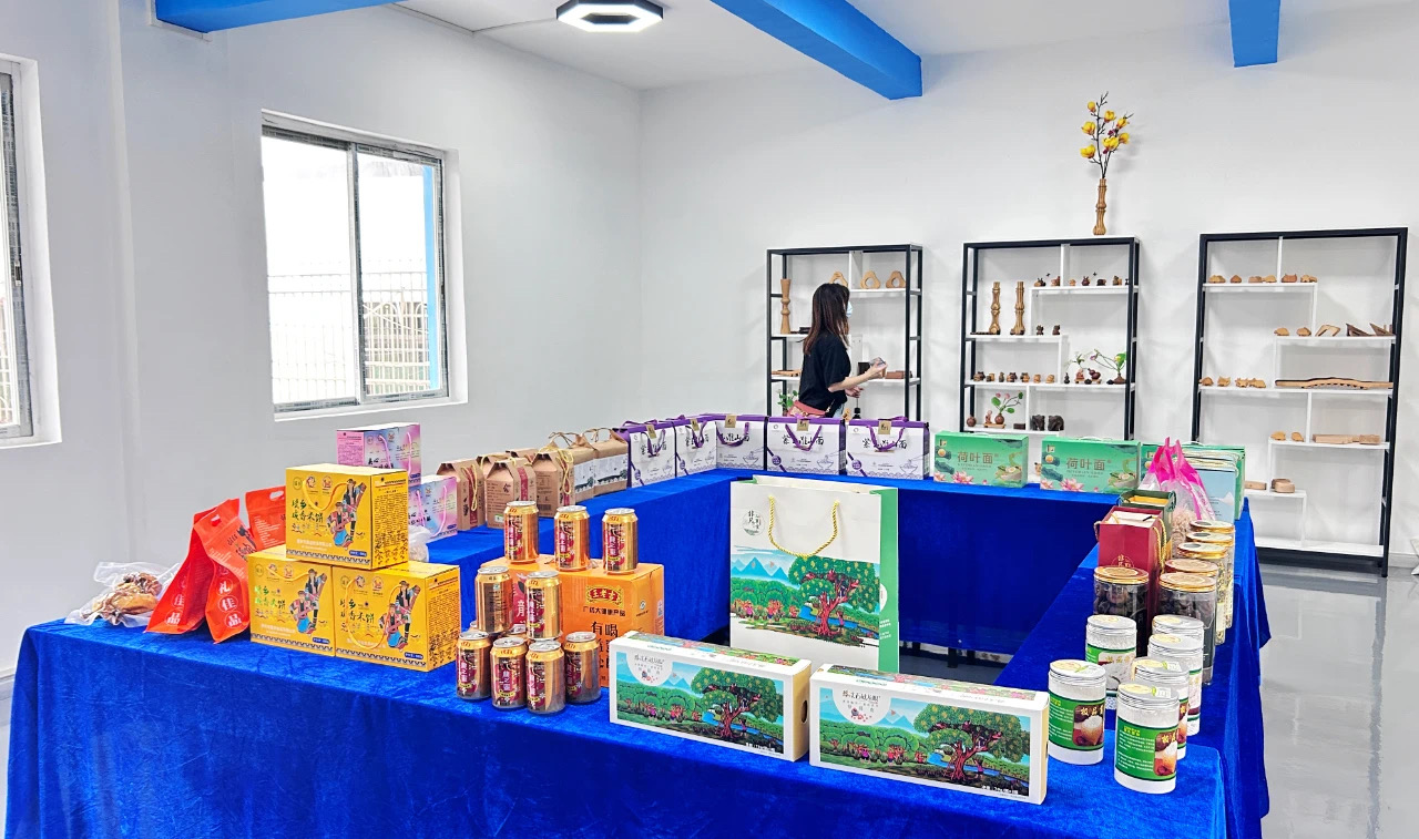鄉村青年創業基地內陳列的龍門特色農產品。 惠州日報記者黃宇翔 通訊員龍融心 攝