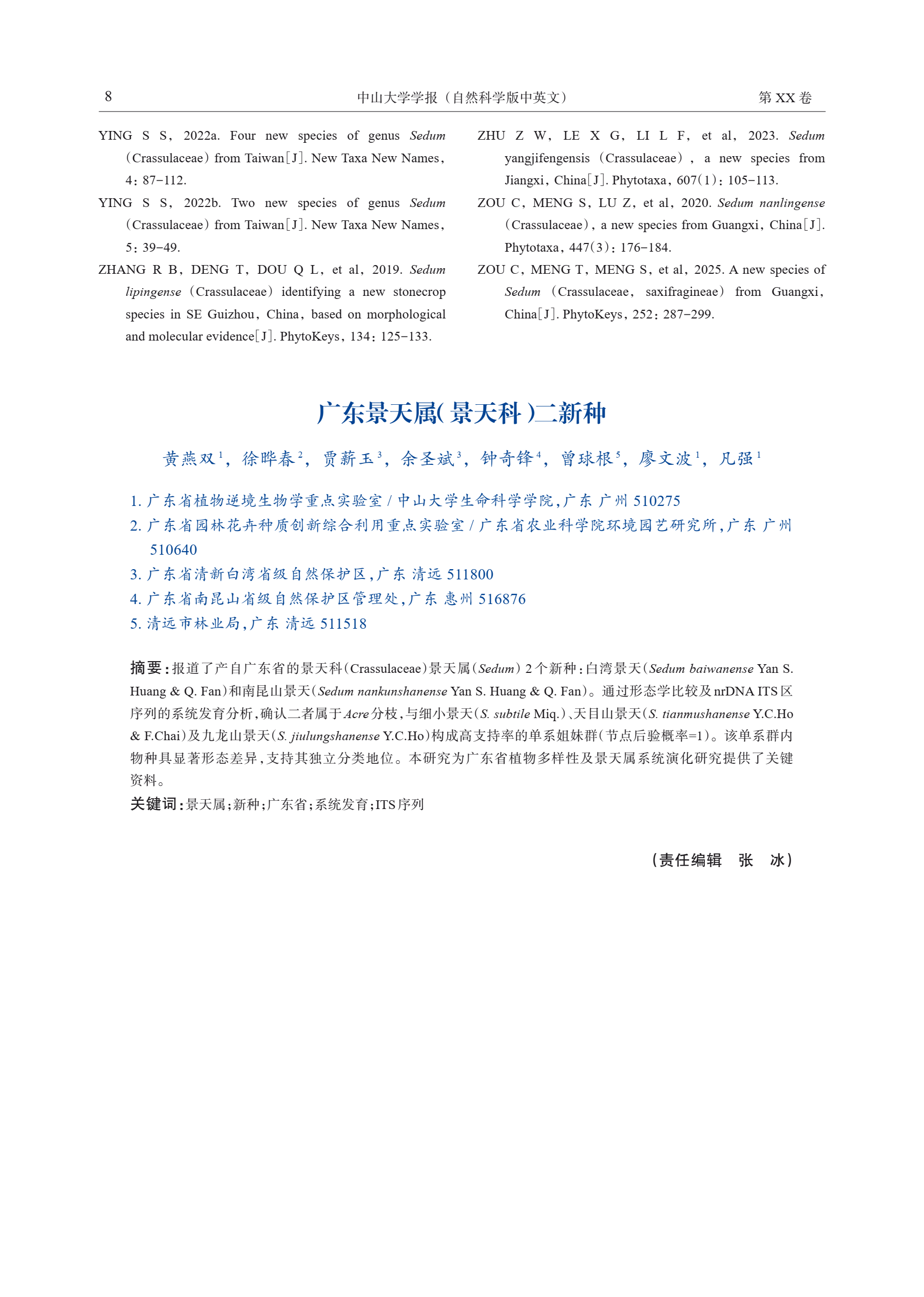 科研人員在南昆山省級自然保護區發現新物種南昆山景天,相關成果于2025年10月在《中山大學學報(自然科學版中英文)》發表。