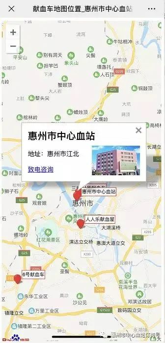 市民可以關(guān)注血站微信公眾號(hào)“惠州獻(xiàn)血”,在菜單去獻(xiàn)血-->查詢獻(xiàn)血點(diǎn)位置。如有需要,也可以撥打0752-2818708,可為您匹配最近的獻(xiàn)血點(diǎn)。