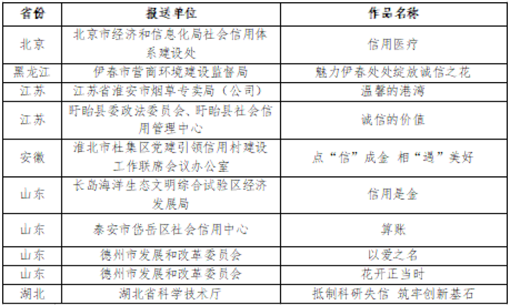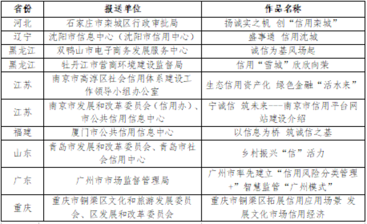 第四屆“新華信用杯”全國信用案例征集暨信用應用場景優秀微視頻征集活動評選結果如下(排名不分先后):