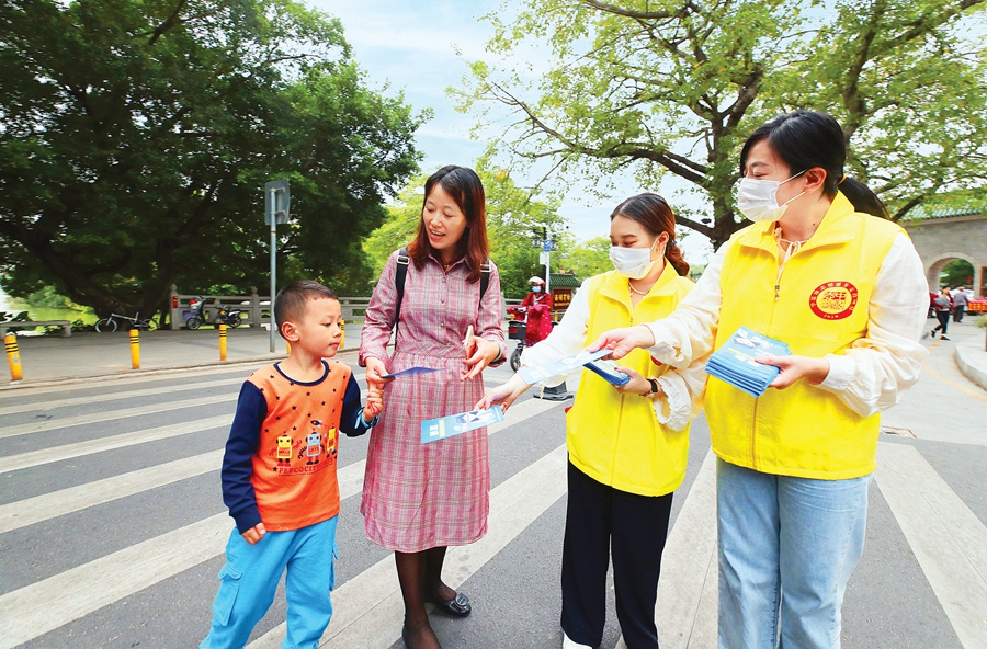 志愿者在市區宣傳《惠州市文明行為促進條例》。惠州日報記者鐘暢新 攝
