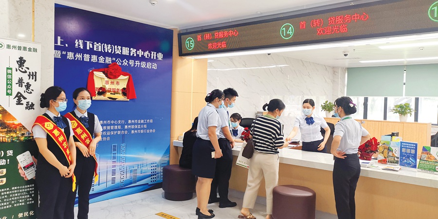 去年6月,惠州市首(轉)貸服務中心揭牌。圖為市民在中心咨詢業務。 惠州日報記者劉煒煒 攝