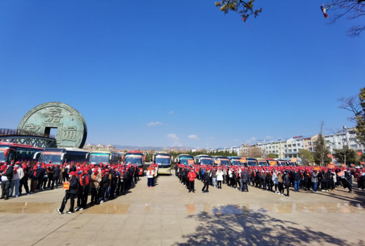 節后返崗往往伴隨著春運高峰,火車票、高鐵票“一票難求”的現象普遍。如果員工不能按時返崗,企業不僅難以安排生產計劃,甚至將影響訂單的準時交付。為保障企業用工,做好返鄉員工返崗服務,惠州市人社局提早謀劃,節前與云南省就業局聯系組織專列事宜。為確保首趟返崗專列順利發車,惠州市人社局吳嘉明局長于1月28日(春節假期后上班第一天)帶隊先行趕赴云南昆明對接工作細節。初九早上7時許,惠州市人社局與云南省就業局在昆明會澤縣舉行了云南省2023年農村勞動力轉移就業集中輸出歡送儀式,簡短而莊重的儀式結束后,專列正式啟程。