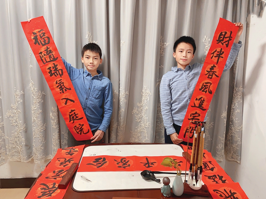 嚴永怡和嚴恒怡是雙胞胎,均就讀于惠州市麥地小學六(5)班。他們在春節前寫了20多副對聯,送給同學和親戚朋友。