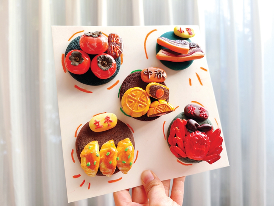 是金子總會發光。憑著這門好手藝,從去年10月開始,何瑞霞被推薦到我市一所小學擔任黏土老師。她特別為孩子們設計了傳統文化為主題的黏土課程。中秋吃月餅、立冬食餃子、寒露蟹黃肥……她以二十四節氣設計節氣食物黏土課,讓孩子們在手作的歡樂中收獲傳統文化知識,深得孩子們的喜愛。