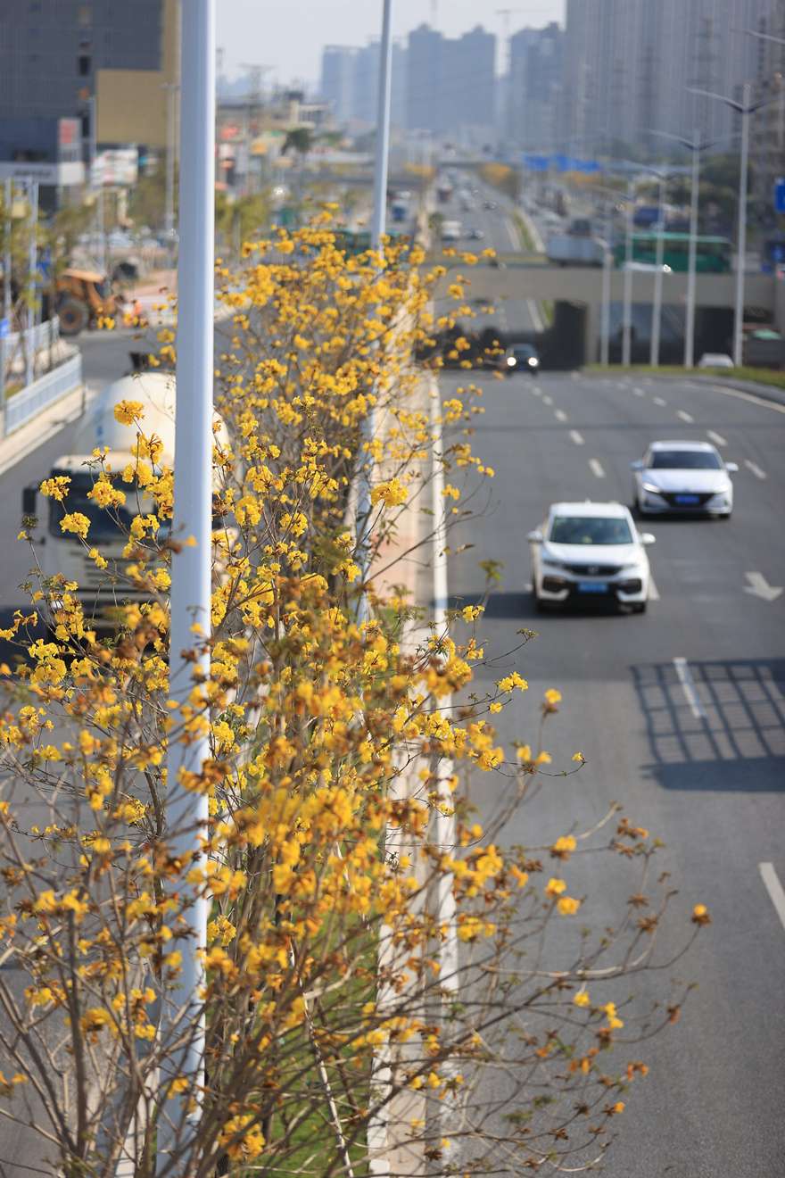 影像丨865株黃花風(fēng)鈴木點(diǎn)亮金龍大道快速路