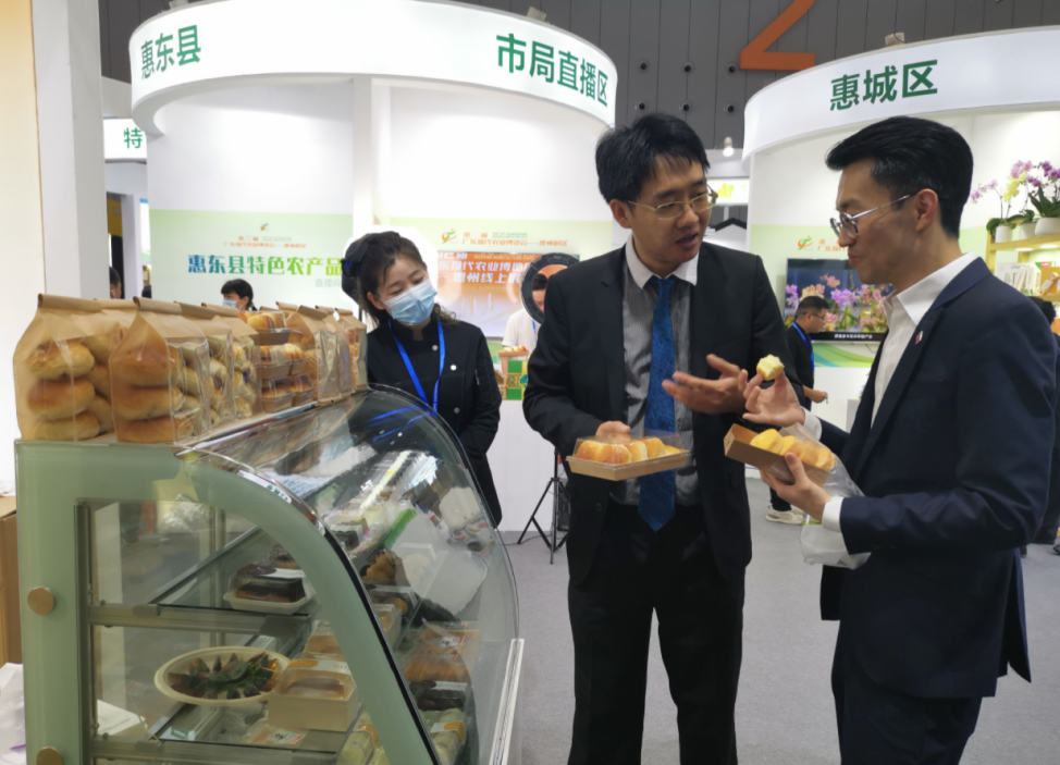 在惠州展館“羅浮御膳”展位,蛋糕和皮蛋等產品同樣受到關注。“我們的蛋糕使用惠東的馬鈴薯、惠東大米和雞蛋等,接下來計劃采購本地的荔枝、青棗、芒果、紫薯等,做成具有本土特色的預制菜產品。”惠州市樂夫農業科技有限公司副總經理董平天介紹,該公司目前有300多種產品,接下來會把惠州本土產品與預制菜相結合,讓“惠州味道”走向全國。