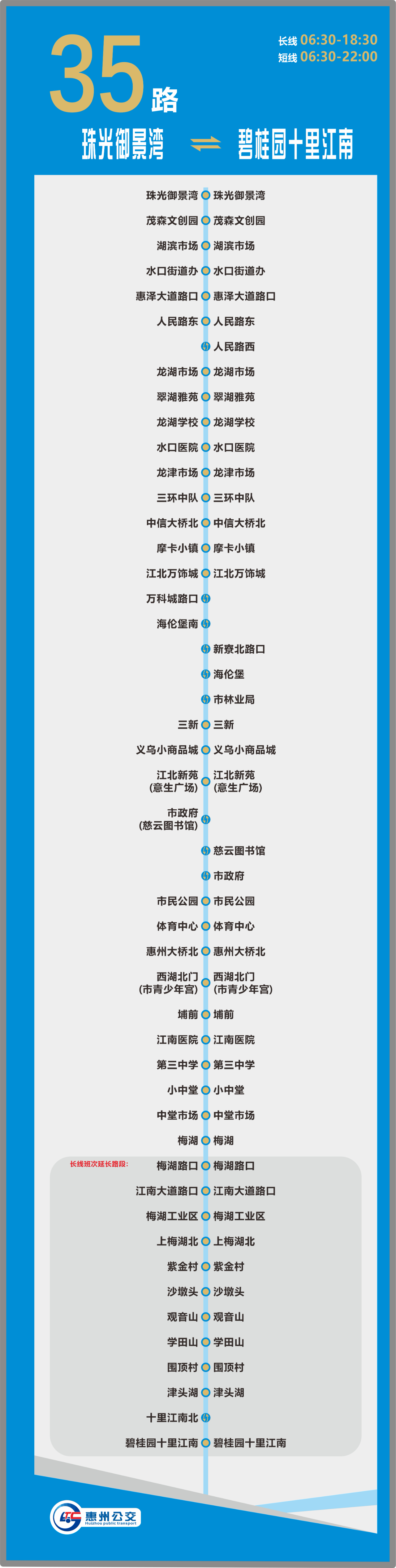 調(diào)整35路由梅湖延伸經(jīng)惠新大道、江南大道至碧桂園十里江南公交首末站。