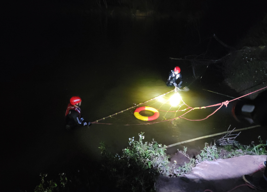 消防員立即穿戴好水域救援裝備下水展開搜索救援,隨后藍天救援隊和心連心救援隊趕到協(xié)同開展全覆蓋式搜索。