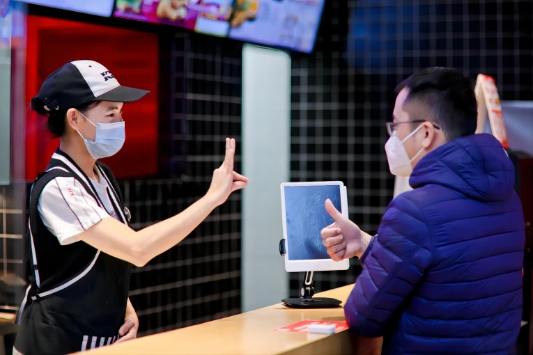 2022年12月14日,在惠州市殘疾人聯(lián)合會的指導(dǎo)下,瑞峰天虹路肯德基“天使餐廳”正式啟動,共有五位殘障人士任職餐廳服務(wù)員,這是惠州首家肯德基“天使餐廳”。