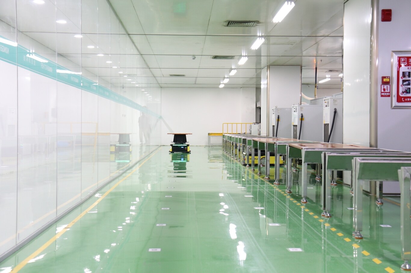 惠州市金百澤電路科技公司智能制造車間,AGV上貨小機器人上貨。