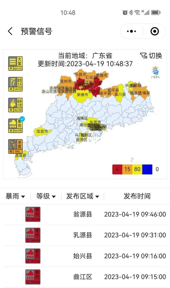 全省4個(gè)地區(qū)暴雨紅色預(yù)警信號(hào)生效