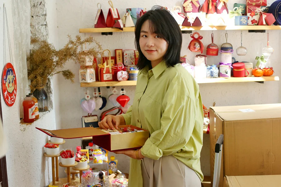 疫情三年給婚宴市場帶來影響,伴手禮生意也受影響,訂單常常遭取消。“去年12月,20個訂單全停了,我只好把糖果分給親朋好友了。”今年婚宴市場復蘇,訂單也逐漸增加,黃琴琴承接的線下訂單多起來。