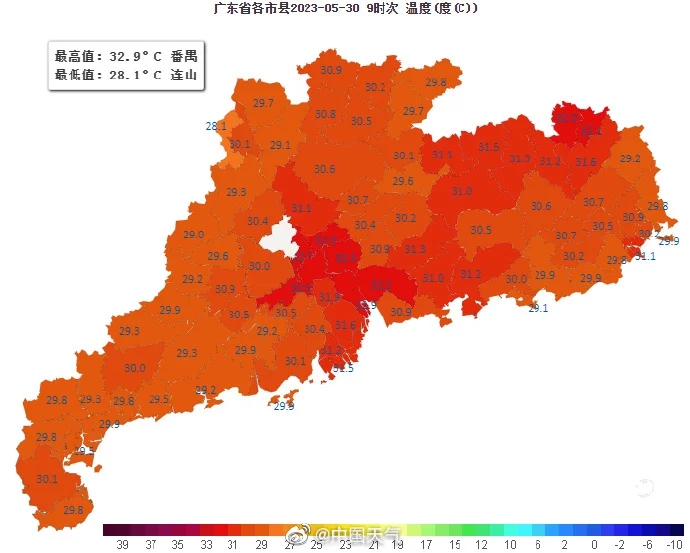 又訊 (記者周智聰 通訊員惠氣象宣)惠州市氣象臺5月30日早上發布今年首個高溫橙色預警信號。惠州多地30日突破5月最高氣溫歷史極值,全市96.9%的氣象站錄得37℃以上的高溫。