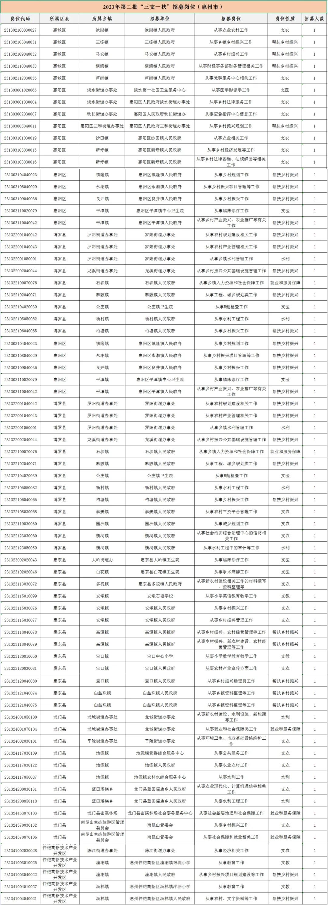 根據《廣東省2023年高校畢業生“三支一扶”計劃實施工作方案》和招募崗位空缺情況,現將582個第一批無人報名或無人遞補的崗位及新增崗位予以公布,請未被招募的人員于2023年6月5日上午9點開始至6月8日下午17點截止,登錄報名系統重新選擇崗位填報。省“三支一扶”辦將根據成績排名確定第二批招募人員。