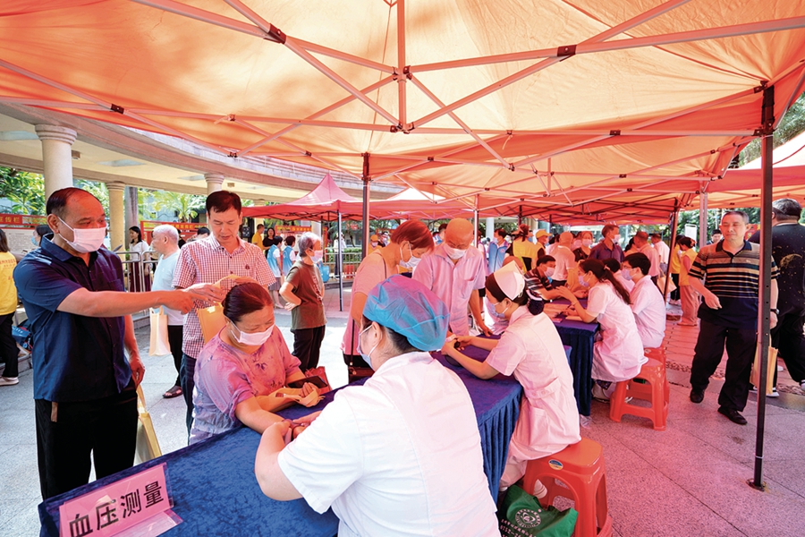 “阿叔,請問您有什么健康問題需要咨詢?”“來這邊,我給您檢查一下。”……惠城區橋西黨建文化廣場作為活動主會場,很快吸引了一大批社區群眾和退役軍人及家屬前來咨詢和問診。其他六個分會場醫療義診活動也得到了社區群眾的歡迎和普遍好評。據統計,共有1500多名群眾參加義診,進一步提高了自身的健康意識。惠州市第二人民醫院、中信惠州醫院、惠州市種德慈善會、方舟健康體檢、李飛口腔門診部、愛爾眼科及各縣(區)相關醫療機構80多名醫護人員志愿者和68名戰旗志愿服務隊隊員參加活動。