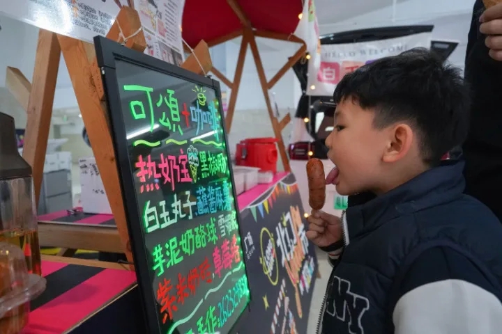 張瑩瑩的攤位上,不少食客前來購買美食。